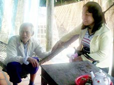 Bà Nguyễn Thanh Giang, Trưởng Ban Văn hóa - Xã hội HĐND thành phố trao đổi việc thực hiện chính sách bảo trợ xã hội cho người cao tuổi với ông Lê Văn Nghị, ấp Trường Thắng, xã Trường Thành, huyện Cờ Đỏ. |