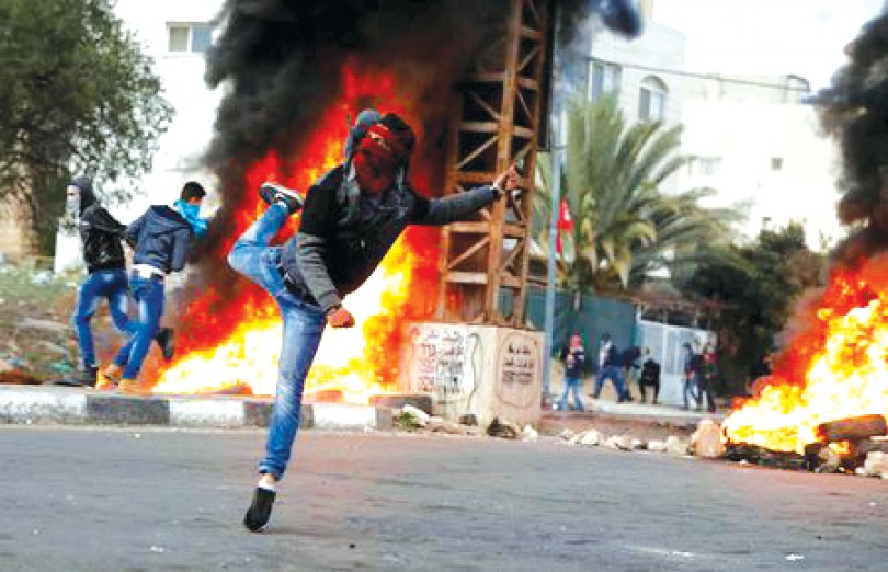 Người Palestine ngày 29-12 xuống đường phản đối Mỹ công nhận Jerusalem là thủ đô của Israel. Ảnh: Reuters