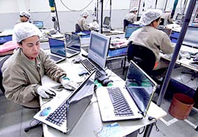 Công nhân lắp ráp máy tính xách tay Positivo ở Curitiba (Brazil). Ảnh: Reuters |