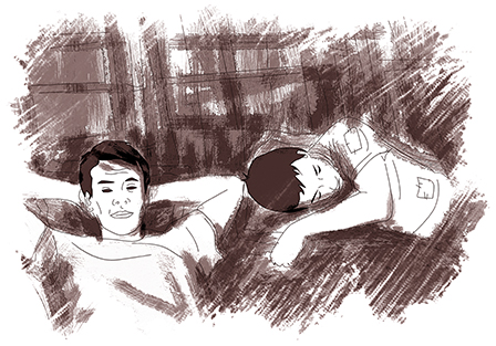 Lần đầu tiên có một người khác bước vào căn phòng ẩm thấp chôn cất kỷ niệm của hắn. Hắn có chút bối rối. Ái lại tỏ ra khá tự nhiên, thản nhiên vào bếp đun nước nấu mì.