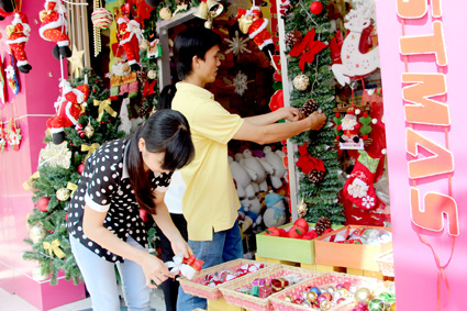 Các cửa hàng kinh doanh tặng phẩm đã bày bán rất nhiều hàng hóa phục vụ Giáng sinh. |