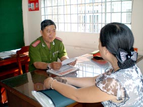 Hẹn tới hẹn lui 2-3 ngày, tôi mới gặp được đại úy Trương Việt Hùng, Cảnh sát khu vực 3, phường Hưng Lợi, quận Ninh Kiều. Câu chuyện giữa chúng tôi cứ ngắt quãng liên tục bởi chốc chốc anh cần giải quyết gấp giấy tờ cho người dân... ... Nhìn cách đại úy Hùng tiếp dân với thái độ niềm nở, vui vẻ, tôi hiểu được phần nào về lời khen của những người dân ở khu vực 3 đối với anh. “Nhà báo thông cảm nghe, Cảnh sát khu vực mà. Bận túi bụi tối ngày à...” - anh Hùng phân bua khi thấy tôi ngồi chờ anh giải quyết công việc cho bà con trong khu vực. Có gặp anh, cùng tháp tùng với anh trong những chuyến công tác xuống cơ sở mới thấy đúng là cảnh sát khu vực bận “như có con mọn”. Hết đi xuống dân nắm tình hình, rồi phải tranh thủ về nhà thông tin khu vực để xác nhận giấy tờ cho các hộ xin tạm vắng, tạm trú; tiếp và hướng dẫn người dân làm cớ mất giấy tờ, mời bà con đến nhắc nhở về việc buôn bán lấn chiếm vỉa hè