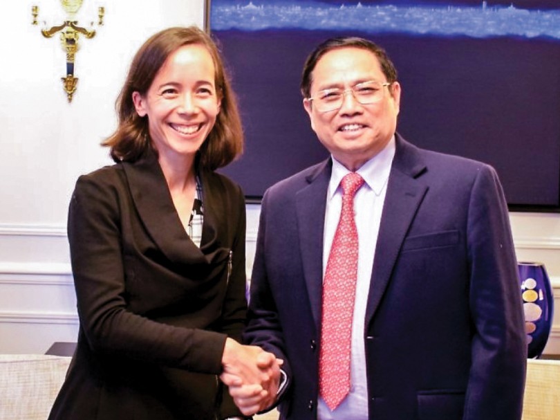 Aurélia Nguyen là người đầu tiên Thủ tướng Phạm Minh Chính gặp gỡ trong chuyến thăm Pháp tháng 11-2021. Ảnh: TTXVN