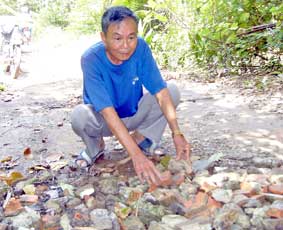Ông Đào Công A sửa một đoạn đường sình lầy. |