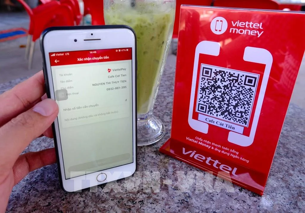 Khách hàng thanh toán qua ứng dụng Viettel Mony của Viettel. Ảnh: Thanh Liêm - TTXVN