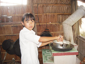 Hồ Thị Kiều Tiên đang nấu cơm chuẩn bị bữa ăn trưa cho cả nhà. |