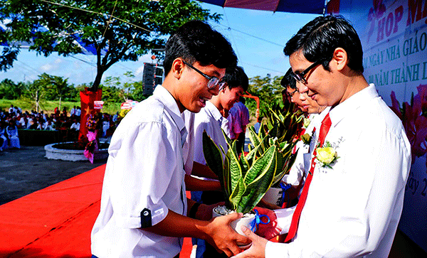 Học sinh Trường THPT Chuyên Lý Tự Trọng (TP Cần Thơ) tặng quà tri ân thầy cô nhân ngày 20-11 năm 2020.