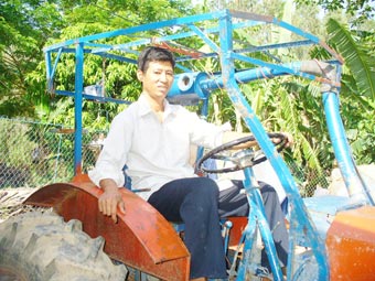 * Đặng Văn Thắng với chiếc máy xới 4 bánh cải tiến