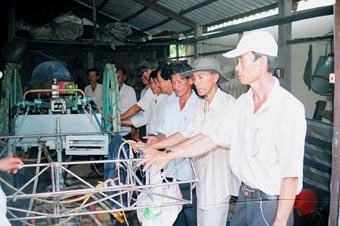 lúa rơi vãi, hao hụt nhiều, chủ đất la, tôi quyết tâm làm máy suốt chuyển từ quạt hút sang quạt lùa và từ hứng thúng qua hứng bao cho tiện”. Ngày đi làm mướn, đêm về, Hai Thắng giăng lưới để kiếm tiền tích góp thực hiện ước mơ. “Cái khó nhất là kỹ thuật hàn, tiện vì mình không qua trường lớp, nên mỗi lần đi sửa máy tôi theo các thợ học, mượn đồ làm thử”