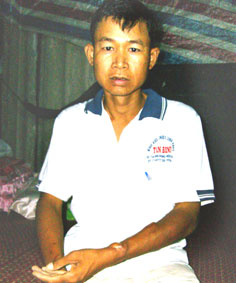 Trước đây, anh Đặng Thanh Hùng là công nhân của Công ty Công trình đô thị Cần Thơ. Năm 2002, trong một lần cấp cứu vì mệt mỏi, khó thở, anh Hùng mới biết mình bị suy thận. Anh được các bác sĩ mổ cầu tay (trái) đặt thiết bị lọc máu để khi lọc thận, lấy máu cho dễ. Bây giờ tay trái của anh Hùng rất yếu, không xách được vật nặng, những chỗ ghim kim để lọc thận, nổi lên những cục u chai sần.