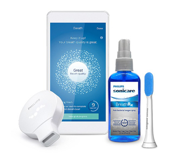 Hệ thống kiểm tra hơi thở Philips Sonicare Breath Care bao gồm một thiết bị phân tích hơi thở kết nối với ứng dụng đi kèm trên điện thoại. Trong đó, thiết bị phân tích hơi thở có nhiệm vụ đo mức độ các hợp chất lưu huỳnh dễ bay hơi (VSC), tạo ra bởi vi khuẩn trong khoang miệng và gây ra mùi khó chịu. Khi muốn kiểm tra, người dùng chỉ việc thổi vào thiết bị, điểm số đánh giá hơi thở sẽ được hiển thị trên ứng dụng di động sau vài giây. Ứng dụng này cũng đồng bộ với một bàn chải đánh răng điện tử và cây cạo lưỡi, cho phép người dùng theo dõi cả sức khỏe răng miệng và kỹ thuật đánh răng. Sản phẩm bán tại