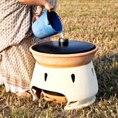 Lò chưng cất có thiết kế đơn giản này tận dụng sức nóng từ Mặt trời để chuyển đổi nước biển thành nước sạch uống được. Nó bao gồm 2 chậu gốm xếp chồng lên nhau. Trong đó, chậu gốm phía trên có màu đen (để tăng hấp thu nhiệt từ ánh nắng) là nơi chứa nước mặn để chưng cất. Nước biển sau khi bốc hơi và ngưng tụ thành nước sạch sẽ được dẫn xuống chậu thứ 2 đặt bên dưới. Nguyên mẫu do nhà thiết kế Ý làm ra hiện sản xuất được 5 lít nước sạch/ngày.