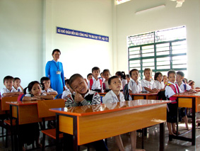 Cô trò Trường Tiểu học Trung Hưng 3, điểm lẻ Kinh Mới trong niềm vui với phòng học mới.