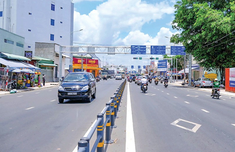Hệ thống đèn giao thông, biển báo, dãy phân cách... trang bị đầy đủ, đảm bảo an toàn giao thông.