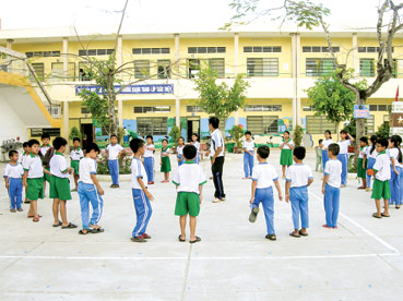 Thầy và học sinh Trường TH Thốt Nốt 1 vui chơi, giải trí trong sân trường rộng thoáng, đạt chuẩn quốc gia. Ảnh: HÀ VĂN |