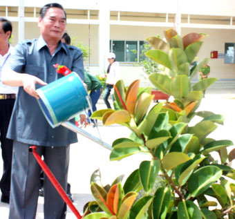 Đồng chí Lê Hồng Anh, Ủy viên Bộ Chính trị, Thường trực Ban Bí thư, trồng cây lưu niệm tại Trường THPT Minh Thuận. |