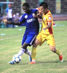 Souleymane (trái) hoạt động hiệu quả hơn khi có sự hỗ trợ của Mustapha trận gặp Bình Định. Ảnh: MINH THẢO |