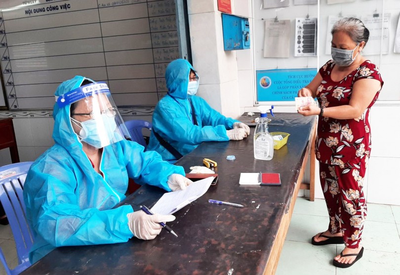 Công chức UBND phường Hưng Lợi, quận Ninh Kiều, thực hiện thủ tục chi tiền hỗ trợ người dân gặp khó khăn do dịch COVID-19. Ảnh: NGỌC QUYÊN