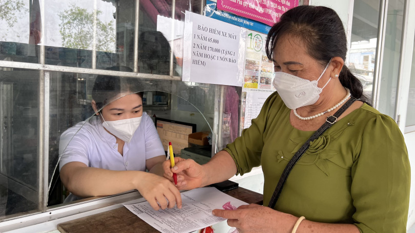Người dân khám, chữa bệnh BHYT tại Trạm Y tế xã Nhơn Nghĩa.