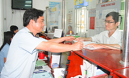 Cán bộ Chi cục Hải quan Tây Đô đang nhận tờ khai hải quan của doanh nghiệp.