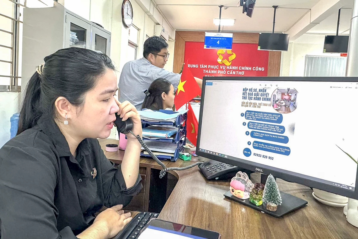 Vừa tư vấn, hướng dẫn người dân thực hiện dịch vụ công (DVC) trực tuyến qua điện thoại, bà Nguyễn Ngọc Hiển, công chức Sở Văn hóa, Thể thao và Du lịch TP Cần Thơ, phấn khởi cho biết: “Tại Trung tâm PVHCC thành phố, mỗi ngày, quầy tiếp nhận và giải quyết TTHC của Sở thụ lý chỉ 3-4 hồ sơ trực tiếp, vì đa số tổ chức, cá nhân nộp hồ sơ qua DVC trực tuyến. Đến nay, hơn 80% TTHC của đơn vị đều được xử lý qua DVC trực tuyến; tỷ lệ thanh toán phí/lệ phí trực tuyến đạt 95%”.