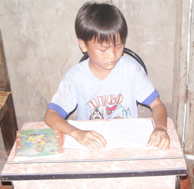 Dù mang trong người chứng bệnh giãn phế quản nhưng cháu Đạo rất chăm học. |