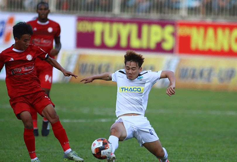 Cầu thủ của Hoàng Anh Gia Lai (phải) bộc lộ nhiều hạn chế ở sân chơi V.League. Ảnh: ANH HUY
