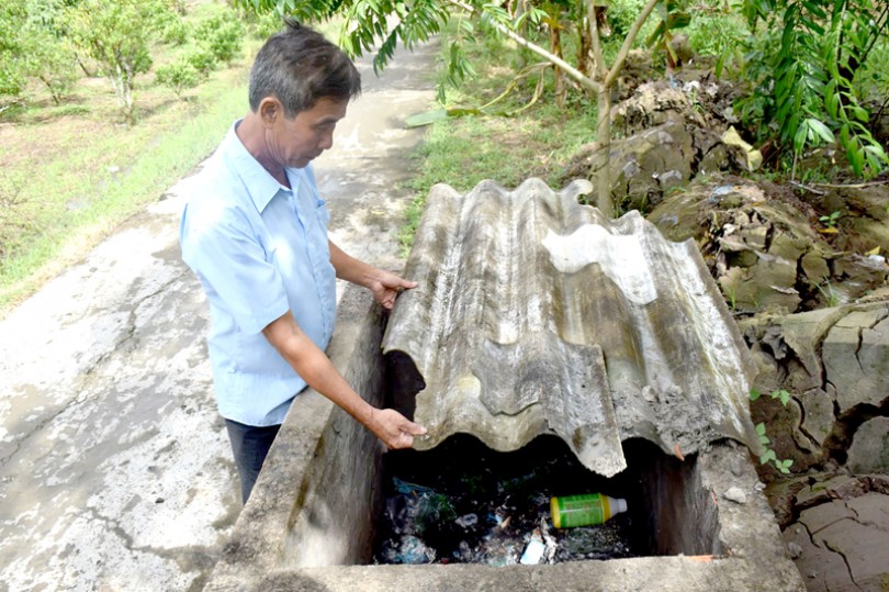 Nông dân được hỗ trợ hố chứa vỏ thuốc bảo vệ thực vật sau khi sử dụng, hạn chế tình trạng vứt bỏ bừa bãi gây ô nhiễm môi trường.
