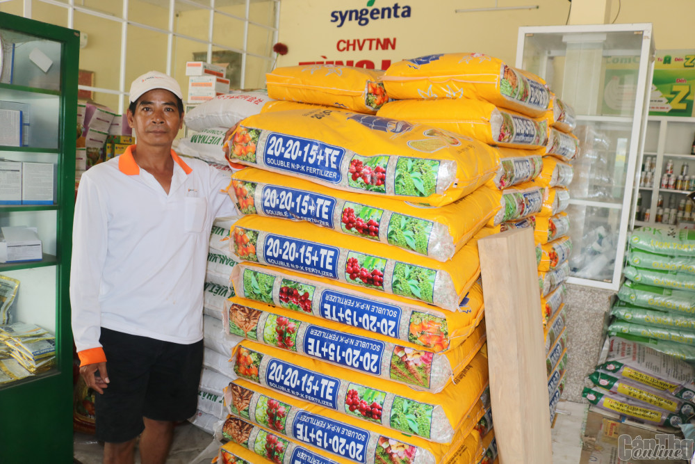 Phân bón được bày bán tại Cửa hàng vật tư nông nghiệp Tùng Lan ở huyện Thới Lai.