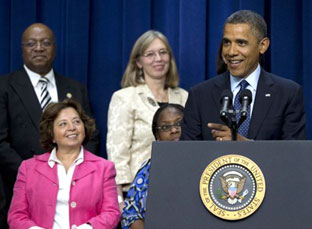 Tổng thống Obama vui mừng vì nước Mỹ chỉ va nhẹ vào “vách đá tài chính”. Ảnh: AP |