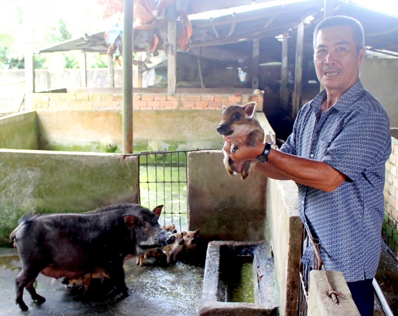 Nhạy bén trong việc lựa chọn mô hình, ông The có thu nhập hơn 100 triệu đồng/ năm từ việc nuôi heo rừng.