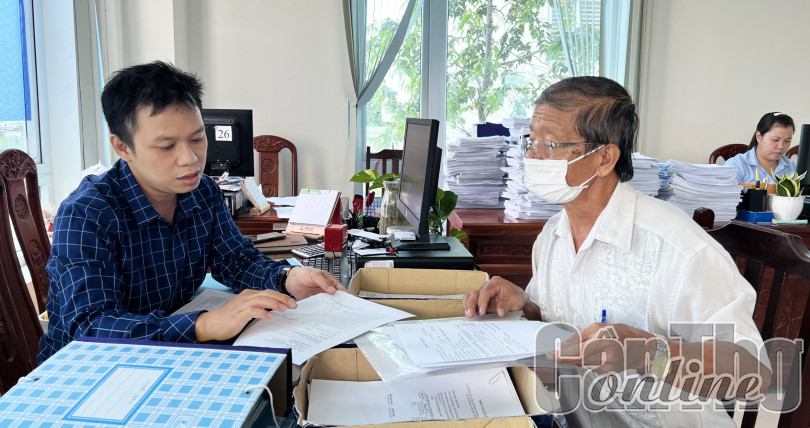 Cán bộ Chi cục Thuế khu vực Bình Thủy - Ô Môn hướng dẫn người dân thực hiện thủ tục về thuế tại bộ phận một cửa của ngành Thuế ở quận Ô Môn.