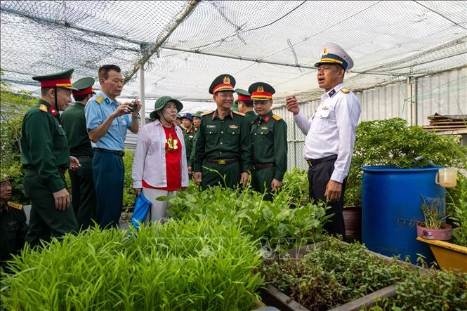Vườn rau xanh của các chiến sĩ trên nhà giàn DK I tạo ấn tượng với các đại biểu.
