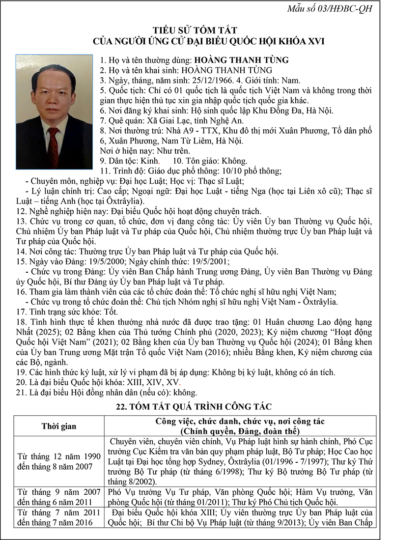 Ông Hoàng Thanh Tùng – Ủy viên BCH TW Đảng, Chủ nhiệm Ủy ban Pháp luật và Tư pháp của Quốc hội