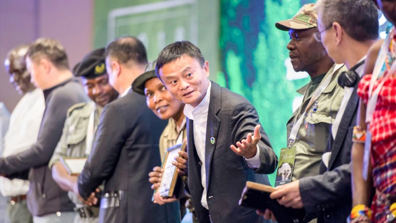 Nhà sáng lập Alibaba Jack Ma trao giải cho những người giành chiến thắng giải thưởng African Ranger Award. Ảnh: AP
