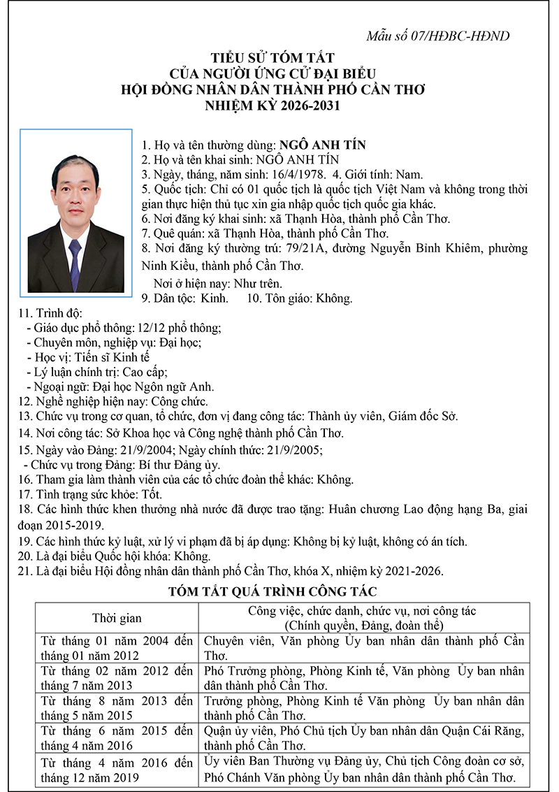 Nghị quyết về việc lập và công bố danh sách chính thức những người ứng cử đại biểu Hội đồng nhân dân thành phố Cần Thơ nhiệm kỳ 2026-2031 theo từng đơn vị bầu cử