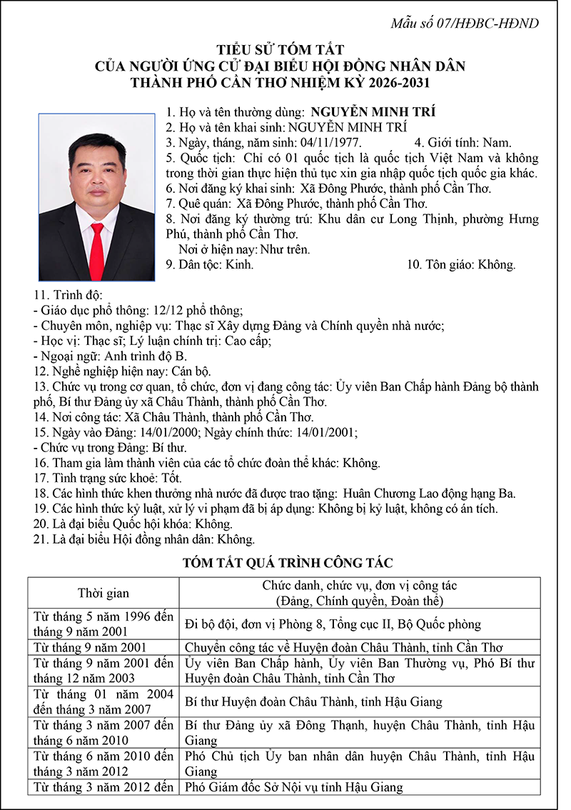 Nghị quyết về việc lập và công bố danh sách chính thức những người ứng cử đại biểu Hội đồng nhân dân thành phố Cần Thơ nhiệm kỳ 2026-2031 theo từng đơn vị bầu cử