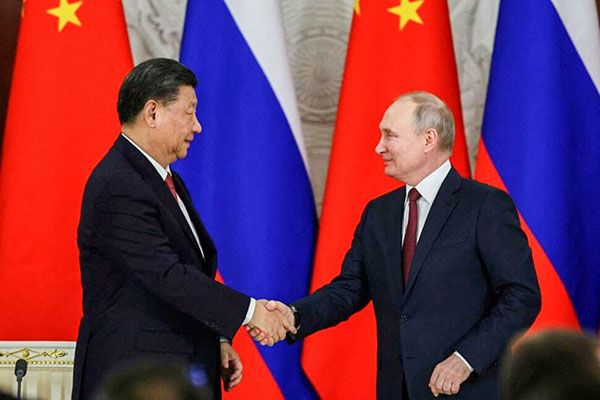Tổng thống Nga Putin (phải) và Chủ tịch Trung Quốc Tập Cận Bình trong cuộc gặp tại Ðiện Kremlin hồi tháng 3-2023. Ảnh: Reuters