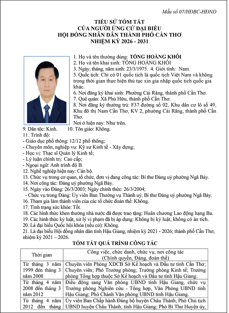 Nghị quyết về việc lập và công bố danh sách chính thức những người ứng cử đại biểu Hội đồng nhân dân thành phố Cần Thơ nhiệm kỳ 2026-2031 theo từng đơn vị bầu cử