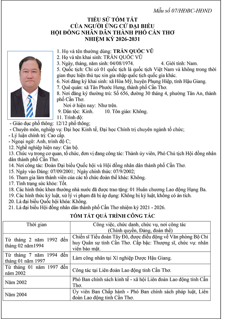 Nghị quyết về việc lập và công bố danh sách chính thức những người ứng cử đại biểu Hội đồng nhân dân thành phố Cần Thơ nhiệm kỳ 2026-2031 theo từng đơn vị bầu cử