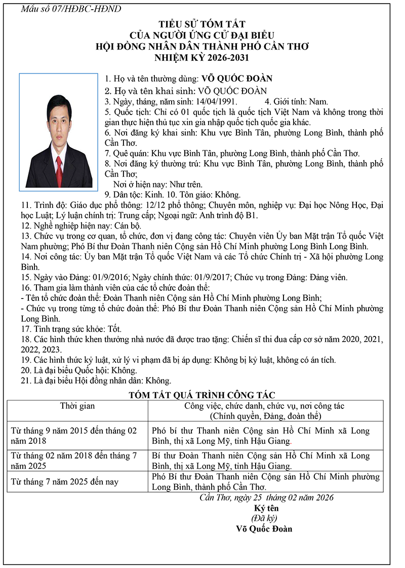 Nghị quyết về việc lập và công bố danh sách chính thức những người ứng cử đại biểu Hội đồng nhân dân thành phố Cần Thơ nhiệm kỳ 2026-2031 theo từng đơn vị bầu cử