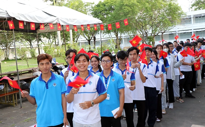 Sinh viên Đại học Cần Thơ nô nức tham gia bầu cử đại biểu Quốc hội khóa XVI và đại biểu HĐND các cấp nhiệm kỳ 2026-2031. Ảnh: Q. THÁI