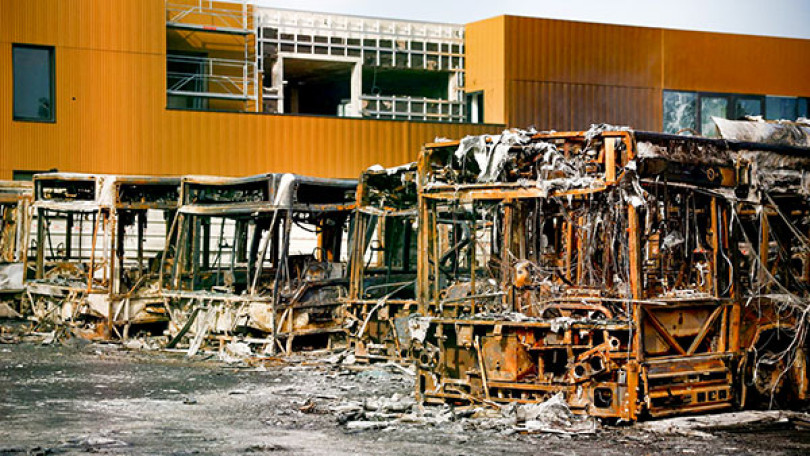 Phương tiện giao thông bị đốt cháy trong vụ bạo loạn ở Pháp. Ảnh: News.sky
