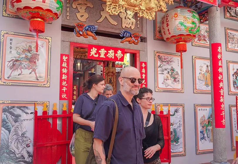 Du khách quốc tế tham quan Di tích quốc gia Hiệp Thiên Cung (phường Cái Răng). Ảnh: DUY KHÔI