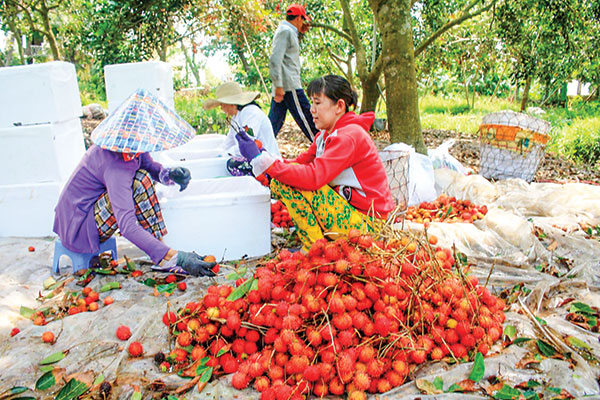 Thu hoạch trái chôm chôm ở huyện Chợ Lách, tỉnh Bến Tre.