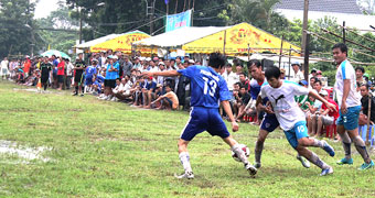 Trận đấu tại giải Vô địch bóng đá truyền thống TP Cần Thơ năm 2015, ở SVĐ Thốt Nốt dưới sự cổ vũ của hàng ngàn khán giả cho thấy sự thu hút của bóng đá phong trào. |