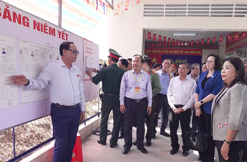 Phó Chủ tịch Quốc hội Trần Quang Phương kiểm tra thực tế tại khu vực bỏ phiếu số 2 ở ấp Nhơn Hưng A.