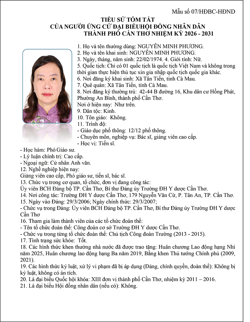 Phó Giáo sư – Tiến sĩ – Bác sĩ Nguyễn Minh Phương – Ủy viên BCH Đảng bộ TP. Cần Thơ, Bí thư Đảng ủy Trường Đại học Y Dược Cần Thơ
