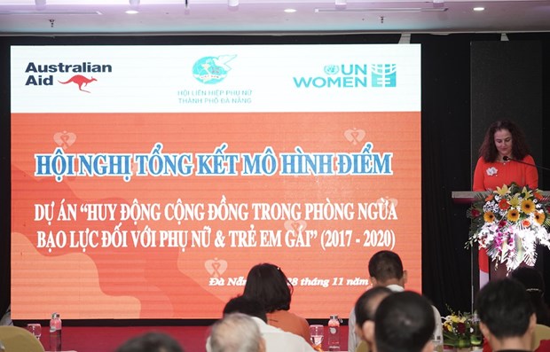 Hội nghị tổng kết dự án Huy động cộng đồng trong phòng ngừa bạo lực với phụ nữ và trẻ em gái tại Đà Nẵng. (Ảnh: PV/Vietnam+)