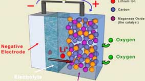 Các nhà khoa học Scotland vừa giới thiệu loại pin đầu tiên trên thế giới được nạp bằng không khí, với dung lượng lưu trữ điện năng nhiều gấp 10 lần pin thông thường. Pin được sạc theo cách thông thường nhưng khi pin được sử dụng, phần mắt lưới mở (của pin) sẽ hút ôxy từ môi trường xung quanh.